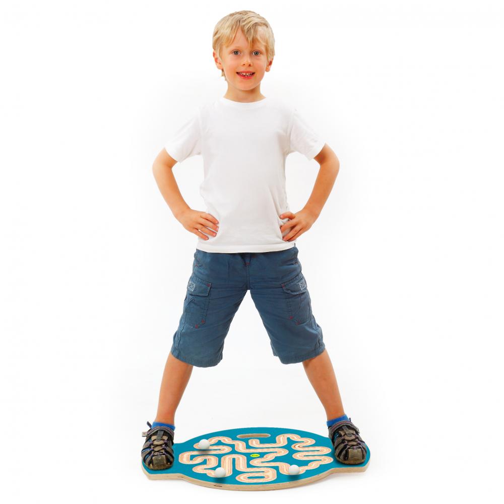 Erzi-Trackboards kombinieren Spiel, Spaß und Bewegung. Ausgestattet mit rutschfesten Trittflächen können Kinder und Erwachsene sich auf diese Balancierscheibe stellen und die Kugeln entlang der Spur ins Ziel bringen. Der flexible und rutschfeste Wippfuß an der Unterseite des Trackboards bietet die entsprechende Sicherheit beim Balancespiel. Der integrierte Tragegriff dient zusätzlich als Kugelhalterung.