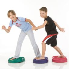 Im Stehenist es eine Balancieruebung auf dem luftgefuellten Noppenkissen.