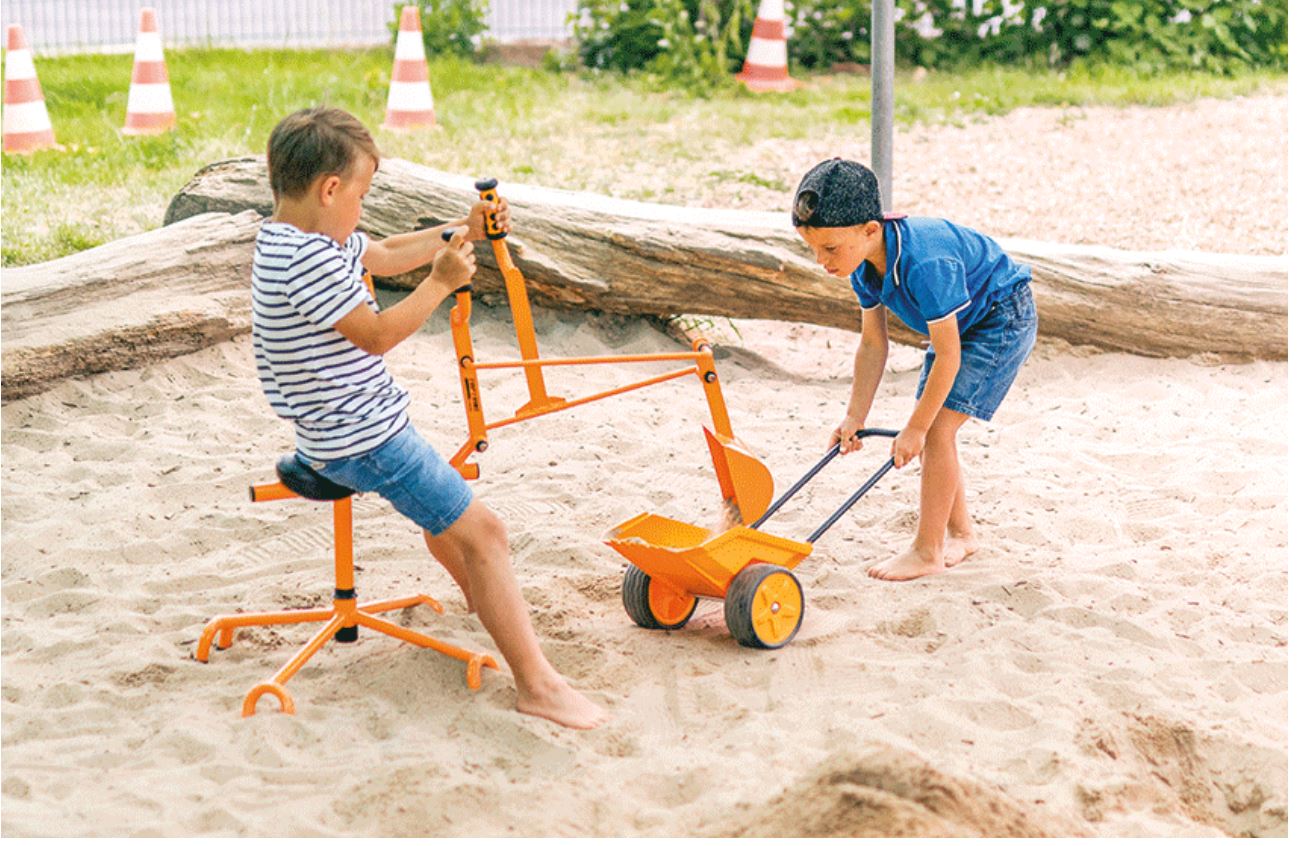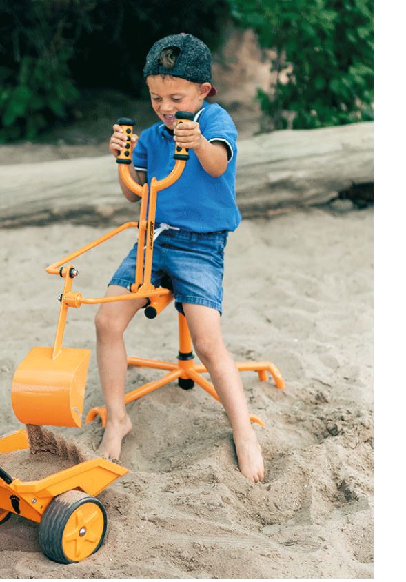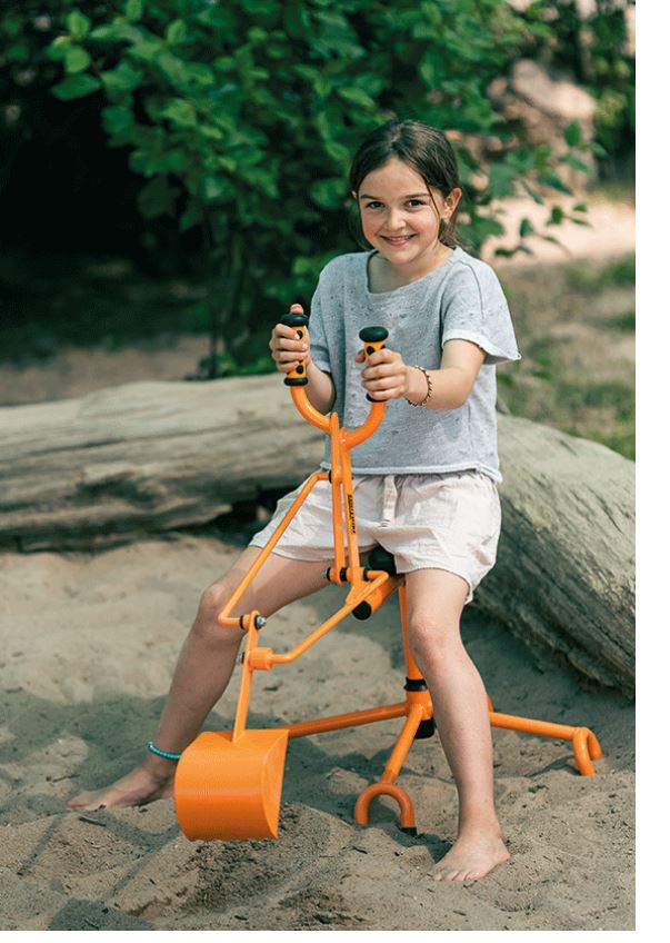 Mit dem Bagger geht es rund im Sandkasten! Der Sitz mit Schaufelvorrichtung ist 360° drehbar. So kann an jeder Seite gegraben und gebuddelt werden. Die Standfüße können sich im Sand richtig eingraben und sorgen für einen sicheren Stand.