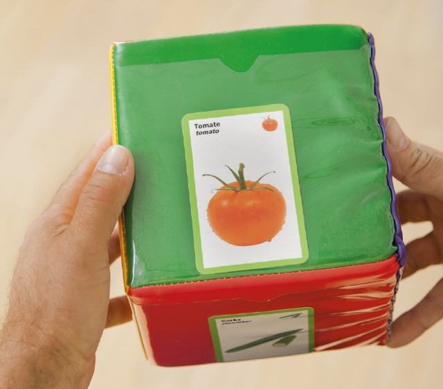 schieben Sie diese in die Klarsichttaschen ein. Nun koennen sich Gespraeche entwickeln,