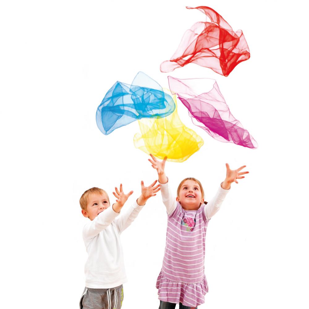 Diese Tücher sind wahre Multitalente: Verkleiden, Jonglieren, Augen verbinden, Dekorieren, Farben lernen und Fangen spielen. Inklusive zweiseitig gestaltetem Display.