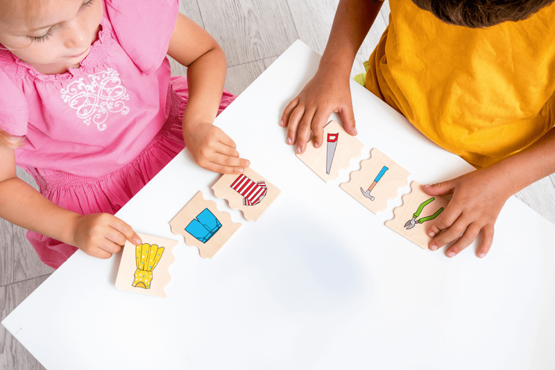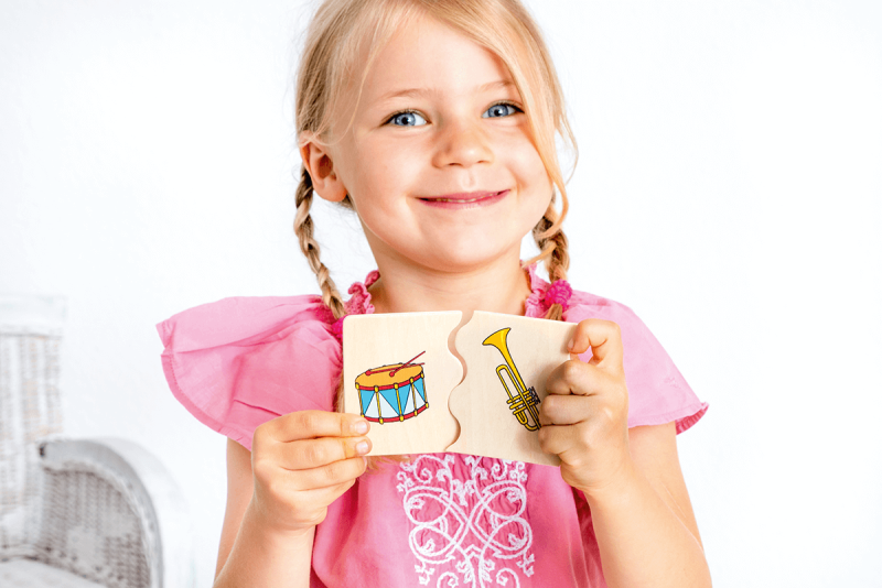 gehören zu einer Kategorie. Mit diesem Puzzle aus Holz lernen Kinder das