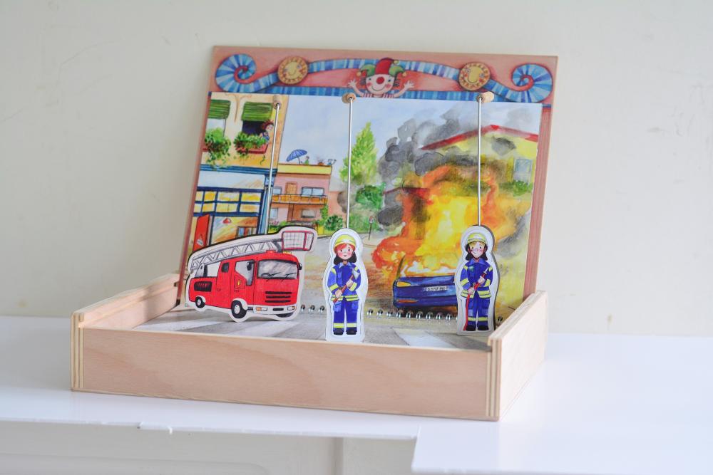 Liebevoll und detailreich gestaltete Bühnenbilder zu Themen, denen Kinder in ihrem Alltag begegnen. Die Szenen sind so konzipiert, dass es leicht fällt sich eigene Geschichten auszudenken und der Fantasie freien Lauf zu lassen. Ebenso animieren sie dazu, Erlebtes nachzuspielen und auf diese Weise ihre Umwelt zu begreifen. Gespielt wird wahlweise mit den Figuren der Grundausstattung oder mit speziell gestalteten Figuren, die durch die selbsthaftenden Magnetfolien in unterschiedliche Rollen schlüpfen können.