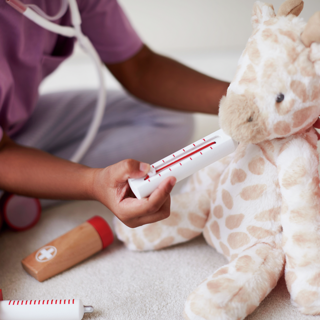 Der nächste Patient bitte! Fördert Rollenspiele, indem die Kleinen ein Patientenzimmer mit Familie, Freunden oder Kuscheltieren einrichten und ihren Patienten anschließend eine Diagnose stellen und sie heilen.