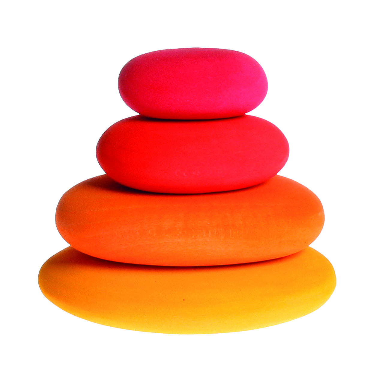 Diese Handschmeichler sind ein kniffliges Balance Spiel beim Stapeln und Bauen. Oder sie bereichern kleine Welten: die Steine können in einem Fluss liegen (Seidentuch), eine Höhle bestücken in einem Wald oder bilden ein steiniges Gelände. Perfekt in Kombination mit unseren Elementen Feuer (Art. Nr. 10730/10780), Wasser (10720/10770) und Erde (10740/10790), den anderen Kieselsteinen (10057/10059) und Regenbogen Pilze (10585/10586). 4 Teile in Rottönen. Holz: Lindenholz farblich lasiert. Maße: H = 2,5cm, L = 6-12cm.Länge: 20 cm