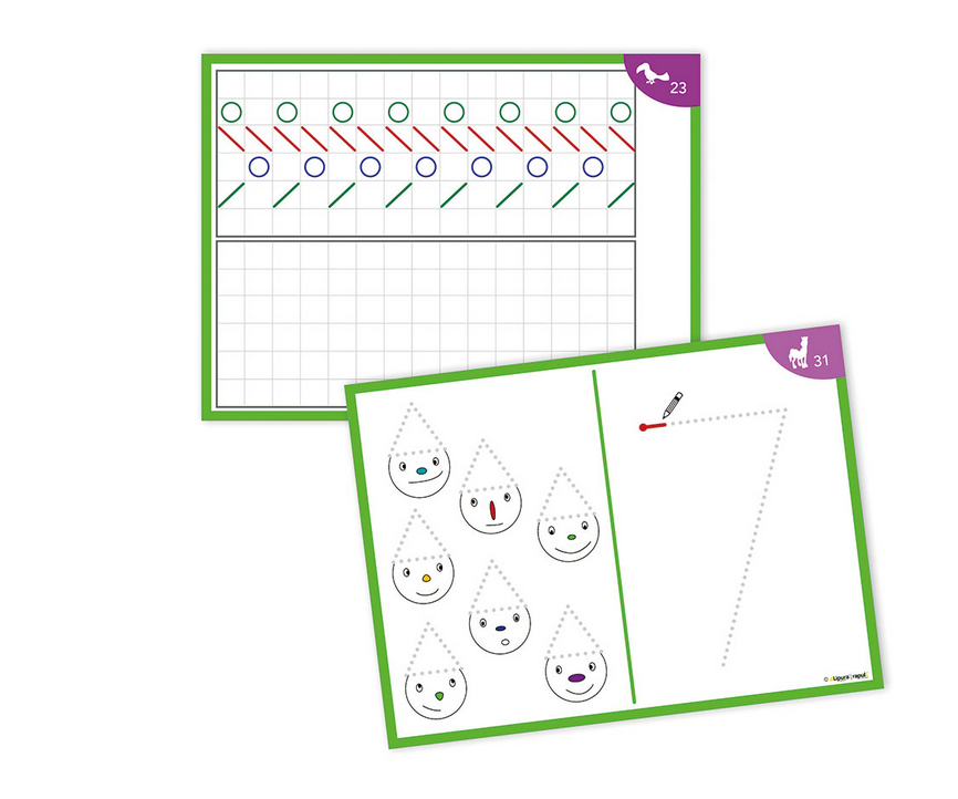 Schwungübungen, Erkennen von Muster und Strukturen sowie Zahlen und Buchstaben kennenlernen