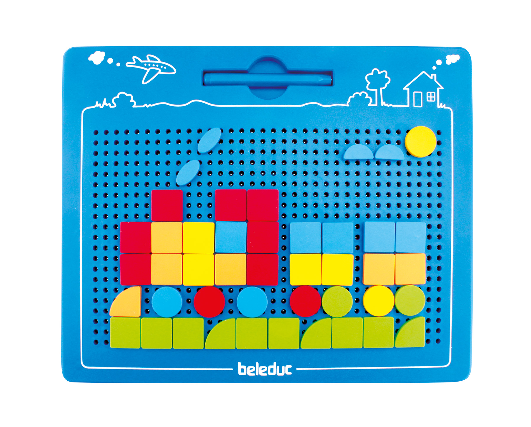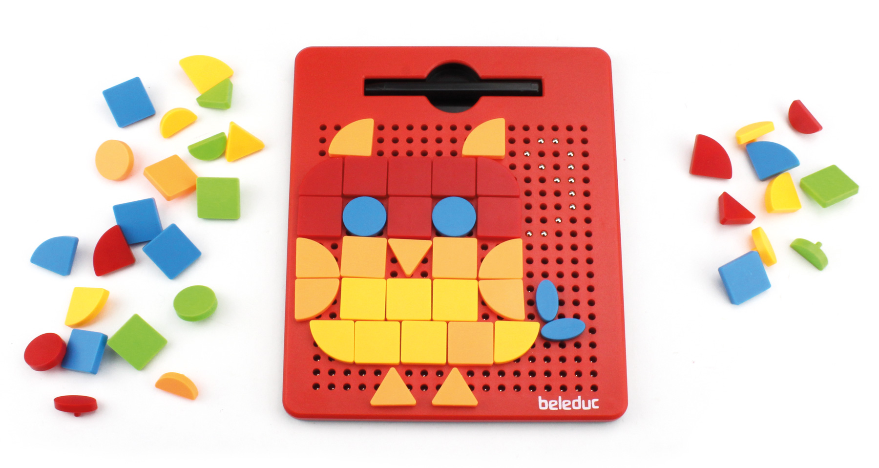 110 geometrische Teile in 6 Formen und 5 Farben, welche sich ganz einfach ins Magentische