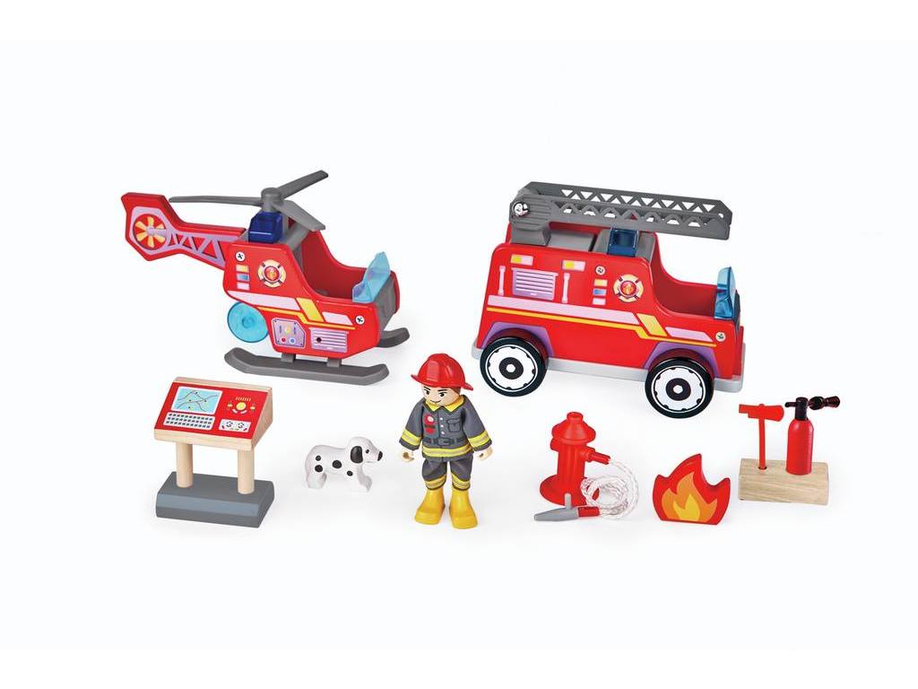 - WIRKLICHKEITSNAHES SPIEL: Die Feuerwehrleute haben bewegliche Arme und Beine. Sie nehmen im Feuerwehrauto oder im Hubschrauber Platz. Alles, was der Feuerwehrmann benötigt, um Leben zu retten, ist bereit: eine Axt, ein Hubschrauber, ein Hydrant, eine Fahne, eine Schalttafel und einen Rettungshund.