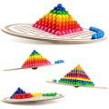 Das Brett neigt sich oder schwingt sanft mit dem Gewicht der Kugeln. Es verlagert beim Bauen sein Gleichgewicht.
