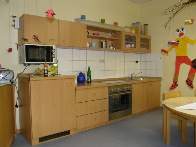 Kinderküchen, individuell aufbaubar aus Einzelelementen; Kühlschrank, Schubladenschrank, Herd mit Ceranfeld und Sicherungsstange, Spülenschrank incl Spüle, Microwelle, Hängeschrank mit Türen, Hängeschrank offen mit Ablageboden, Hängeschrank mit Fenstertüren;