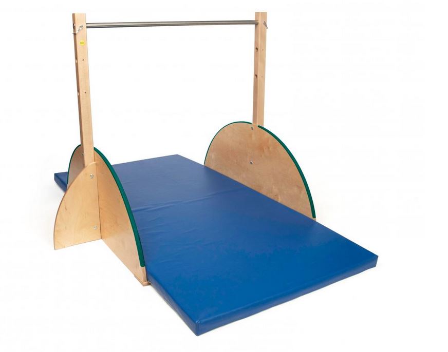 Zur sicheren Nutzung des Recks ist eine Fallschutzmatte mit den Maßen 200 cm x 100 cm und einer Höhe von mindestens 6 cm erforderlich.
