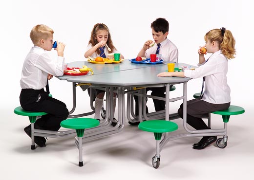 einteilige Stühle fest am Tisch befestigt,Pulverbeschichtung,spurlose Gleiter,