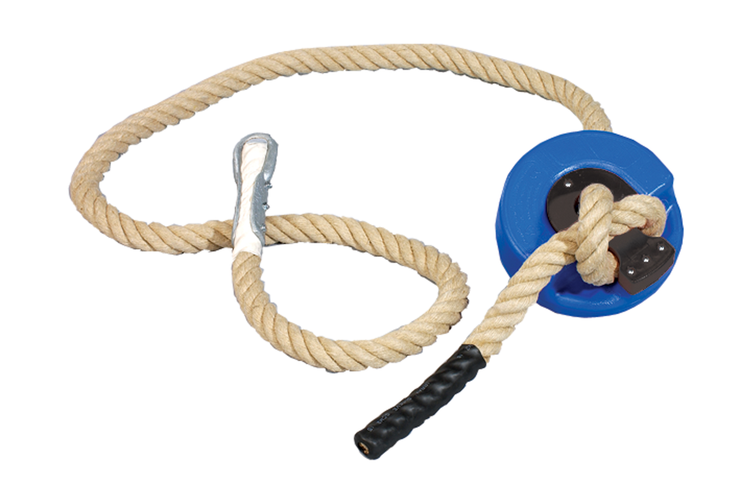Geschmeidige Klettertaue in Turnhallenqualität aus Langhanf 30 mmø, oben mit einem stabilen Seilhalter zum Einhängen, unten mit Kunststoffüberzug. Für die Montage mit unserem Schaukelteller SwingTop können die Taue in 3 verschiedenen Längen bestellt werden, für die Nutzlänge bitte immer 50 cm für die Einarbeitung des SwingTops abziehen. Auf Wunsch kann am Seilhalter ein Schäkel eingehängt werden (zur Vergrößerung der Aufhängeöse).