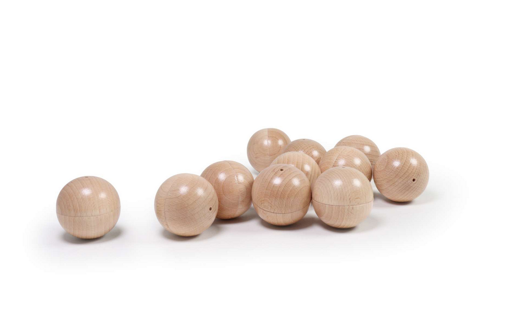 Die Klingenden Holzkugeln laden dazu ein, Klänge auf ganz neue Weise zu entdecken. Die Kugeln erzeugen beim Rollen, Schütteln oder Bewegen einen eigenen Ton. Die naturlackierte Oberfläche bewahrt die warme Ausstrahlung des Holzes und macht jede Kugel zu einem haptische beindruckenden Spielobjekt. Ihre schlichte Gestaltung lenkt den Fokus ganz auf das bewusste Wahrnehmen von Klang, Bewegung und Material. Sie eignen sich für Kinder verschiedener Altersstufen und bereiten auch älteren Kindern und Erwachsenen Freude beim Entdecken von Klang und Rhythmus.