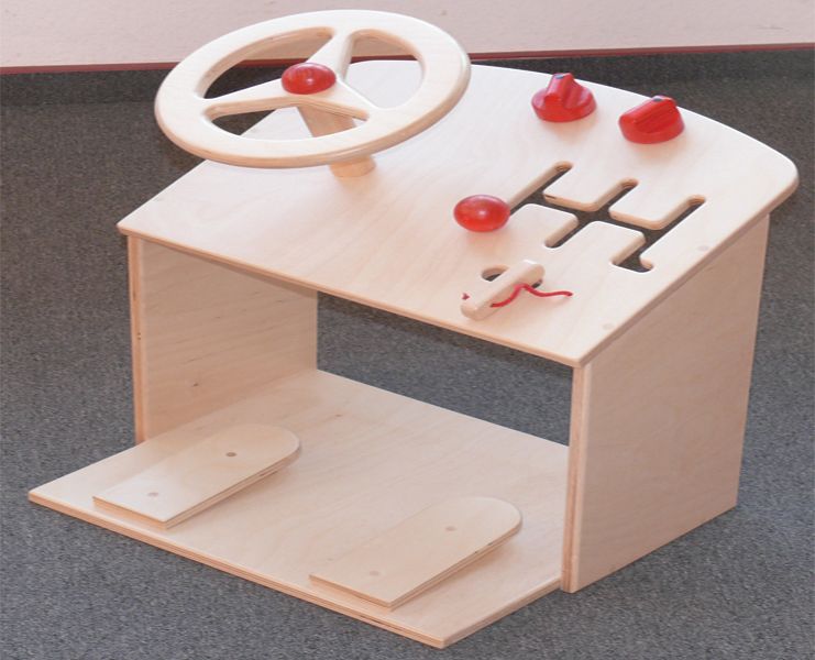 Mit Zündschlüssel und Schaltung. Material: Birkensperrholz und Buchenholz.