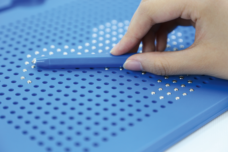 Mithilfe des magnetischen Stifts lassen sich die Metallkugeln nach oben