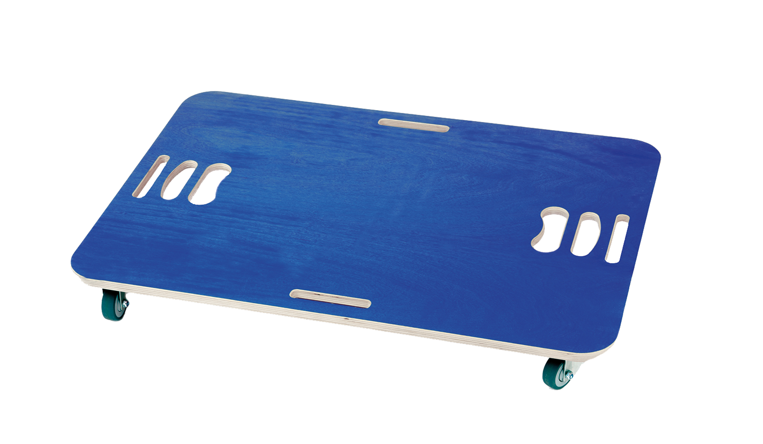 Extra große Riesen-Rollbretter (73 x 48 cm) für neue, herausfordernde Bewegungsspiele. 15 mm dickes Birkenschichtholz, rot und blau lasiert, mit abgerundeten Kanten und leichtlaufenden, abriebfesten Lenkrollen mit Kugellager. Jedes Rollbrett hat an den kurzen Seiten jeweils zwei Sicherheits-Griffmulden zum Festhalten und zur Vermeidung von Verletzungen der Hände. Die vier Schlitze rundherum funktionieren als Verbindungsmöglichkeit: Einfach die mitgelieferten Klettbänder durchziehen und schließen – fertig ist das Maxi Rolletto Floß (paarweise nebeneinander) oder der Maxi Rolletto Zug (hintereinander)! Bis zu 8 Kinder können dann ihre Koordination und Geschicklichkeit trainieren und in Gruppenspielen beweisen.