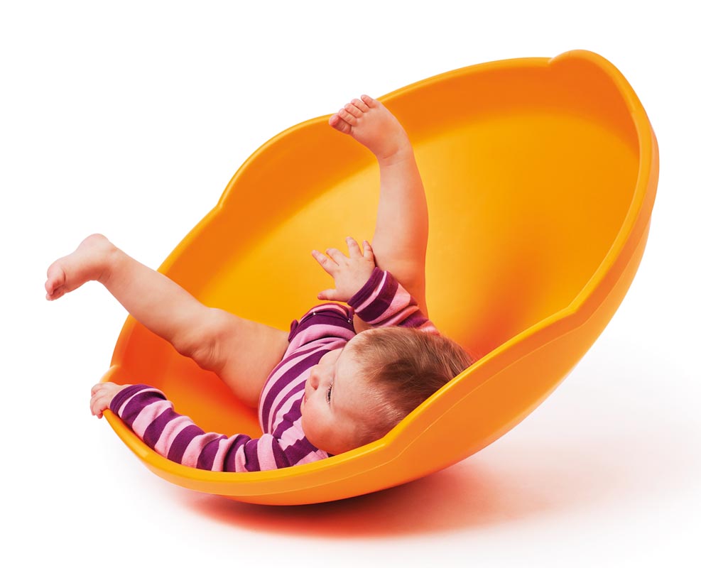Mini Top • Das Mini Top wurde mit besonderem Augenmerk auf die motorische Entwicklung von Kindern im Alter von 0-4 Jahren entwickelt. Das Mini Top lädt kleine Kinder zum Wippen, Schaukeln und Drehen ein – zunächst mit Hilfe eines Erwachsenen und anschließend alleine. Es fördert motorische Aktivitäten, die für die frühe Entwicklung des Gleichgewichtssinns (vestibuläres System) und der motorischen Kontrolle eines Kindes wichtig sind. Die Form des Mini Top macht es sicher für kleine Kinder: Es ist so dimensioniert , dass es groß genug, aber nicht zu groß für kleine Kinder ist. Die geometrische Form sorgt dafür, dass sich die Kippbewegung allmählich verlangsamt und gleichzeitig ein Umkippen des Kindes verhindert. Das Mini Top wurde sorgfältig entworfen, um sicherzustellen, dass sowohl der Kopf als auch die Finger des Kindes während des Spiels geschützt sind. Einfaches, funktionales Design.