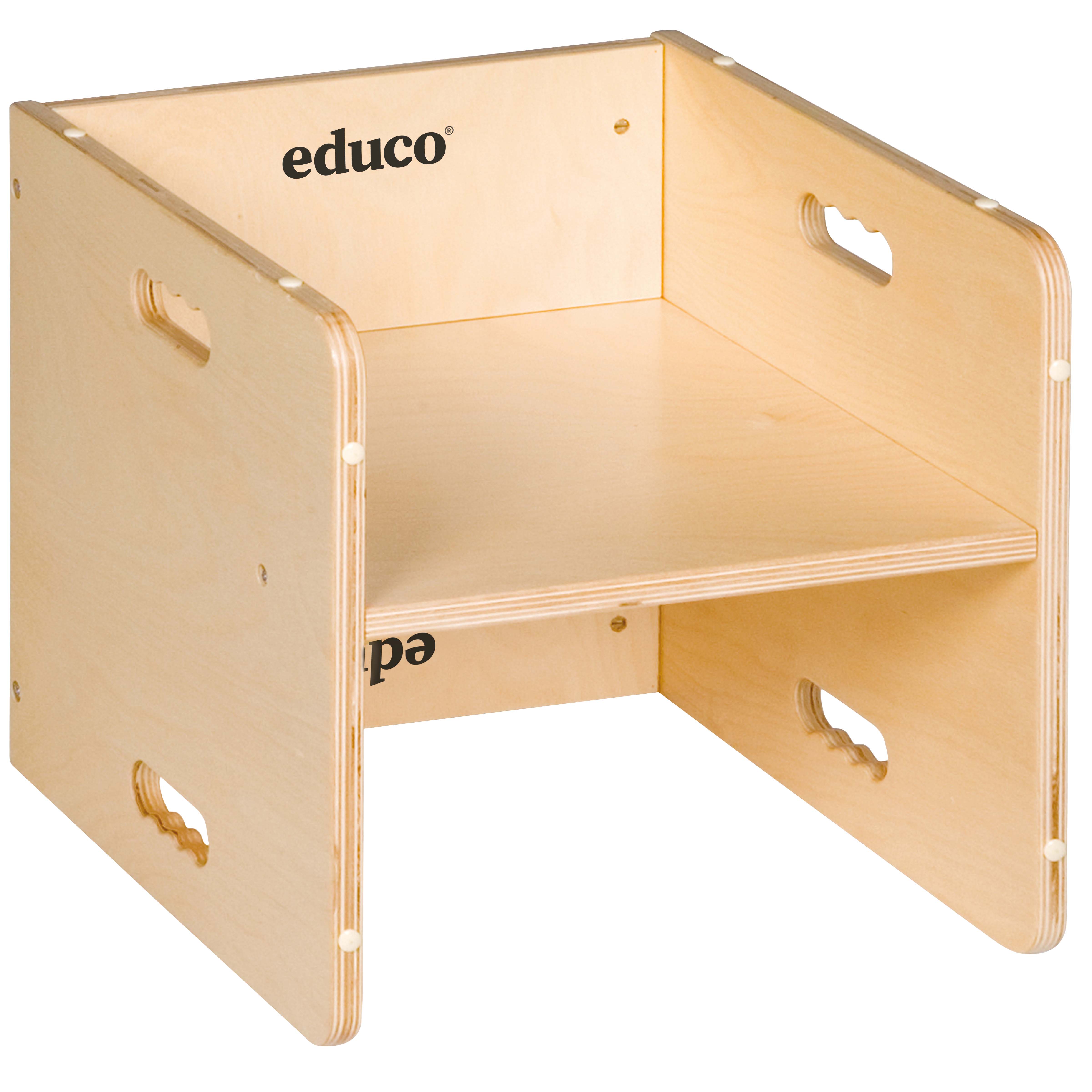 Multifunktionaler Hocker 2 Sitzhöhen 15 und 21 cm Maße 34 x 34 x 34 cm  Birke Multiplex massive Ausführung