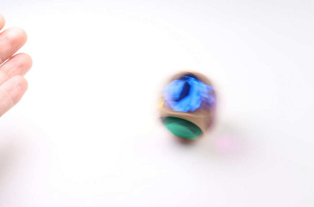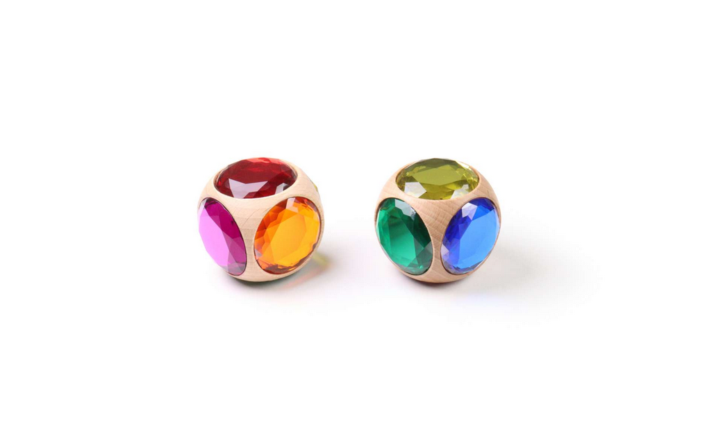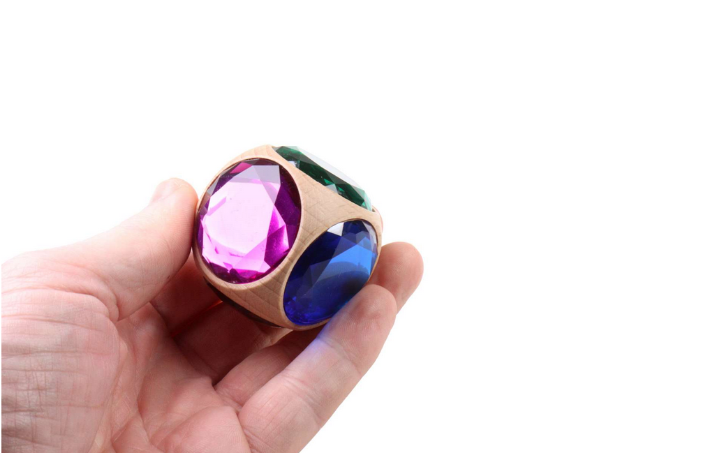 Das Besondere an den Glitzerwürfeln zeigt sich, wenn man sie auf einer Ecke mit den Fingern dreht. Dann beginnen sie sich wie kleine Kreisel zu drehen – oft erstaunlich lange. Während der Drehbewegung brechen die Diamantsteine das Licht und erzeugen funkelnde Reflexe, die sich ständig verändern. Dieses Zusammenspiel aus Bewegung, Licht und Material macht die Würfel zu einem faszinierenden Spielobjekt für Kinder und Erwachsene.