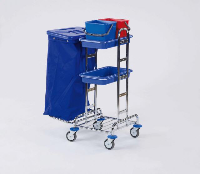 Kompakter, verchromter Wagen ohne Wischeinheit mit 120 l Abfalleinheit.