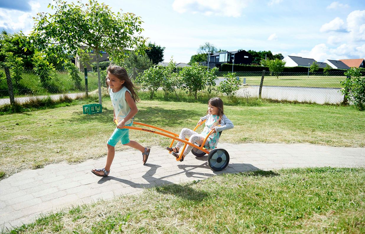 Sulky aktiv • Der Sulky bietet viel Spielspaß für zwei Kinder. Ein Kind ist Passagier und darf sich vom Spielpartner, von der Spielpartnerin - wo hin es möchte - ziehen lassen. Die Kraft und die Ausdauer werden bei dem Kind davor spielerisch gefördert. Der Sulky verfügt über einen Sicherheitsbügel hinten, damit der Sulky nicht umkippt.