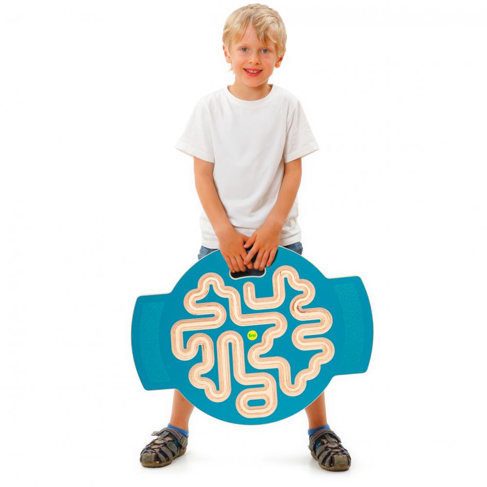 Erzi-Trackboards kombinieren Spiel, Spaß und Bewegung. Ausgestattet mit rutschfesten Trittflächen können Kinder und Erwachsene sich auf diese Balancierscheibe stellen und die Kugeln entlang der Spur ins Ziel bringen. Der flexible und rutschfeste Wippfuß an der Unterseite des Trackboards bietet die entsprechende Sicherheit beim Balancespiel. Der integrierte Tragegriff dient zusätzlich als Kugelhalterung.