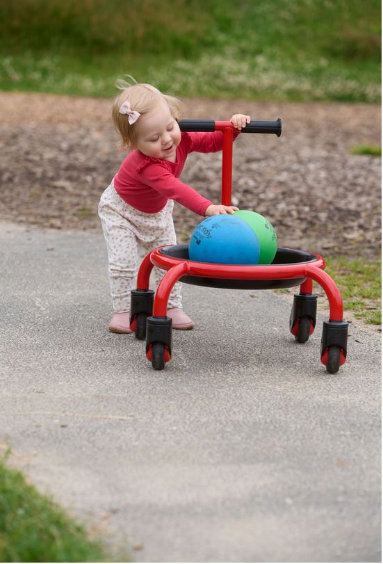 VIKING CHALLENGE Runder Laufwagen • Der runde Laufwagen mit dem einzigartigen Design bietet robuste Qualität und Sicherheit für die ersten Lauferlebnisse kleiner Kinder. Zwei feste Räder an der Rückseite geben Stabilität, während die zwei Lenkräder an der Vorderseite leichtes Manövrieren erlauben.