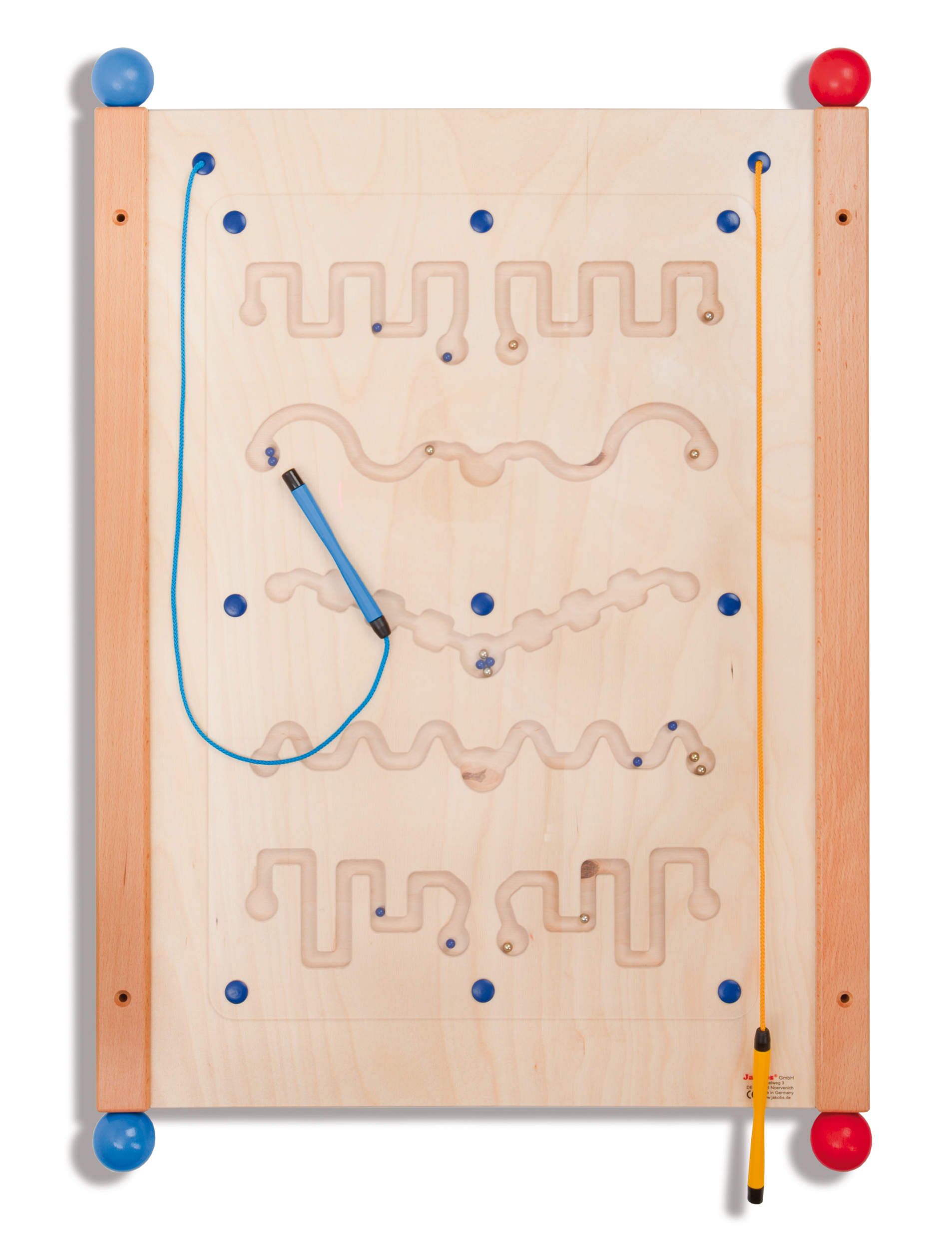 Wandelement Magnet Rallye • Faszinierendes Magnetspiel mit integrierten Magnetstiften und große Version des Jakobs Tischspiels Magnet Rallye. Die fünf verschieden geformten, geschwungenen Linien sind unterschiedlich schwierig, das macht das Wandelement für kleine und größere Kinder attraktiv.