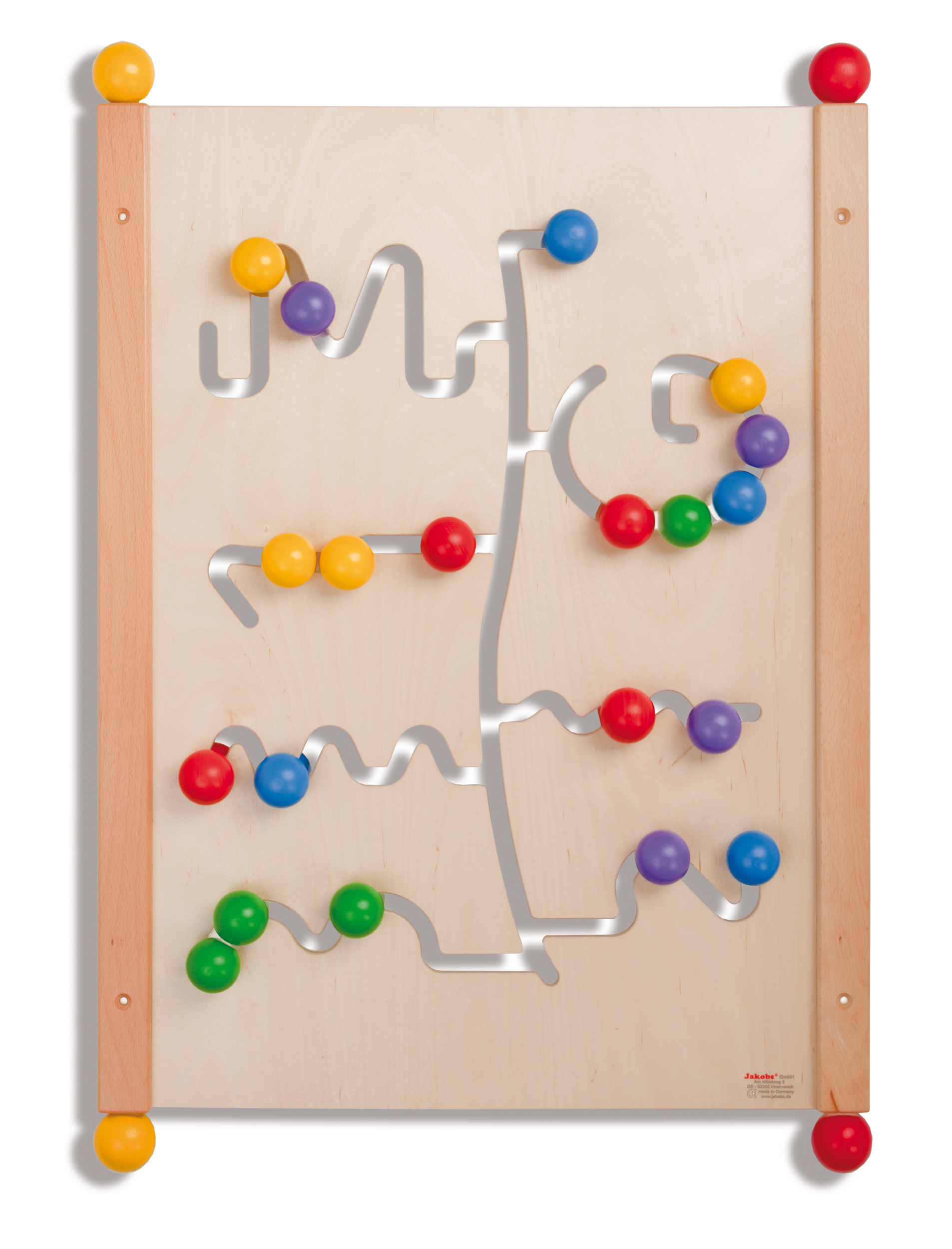 Wandelement RoadRunner • Das farbenfrohe RoadRunner Spiel mit extra dicken Holzkugeln in 5 Farben, als einzelnes Wandelement oder leuchtender Blickfang, wenn mehrere Elemente nebeneinander gehängt werden.