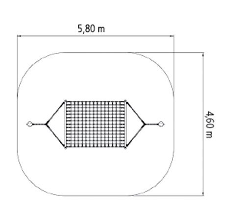 - Liegefläche (1,40 x 2,00 m) und Aufhängeseile aus Herkulesseil (Ø 16 mm, 6-litzig, mit Stahleinlage)