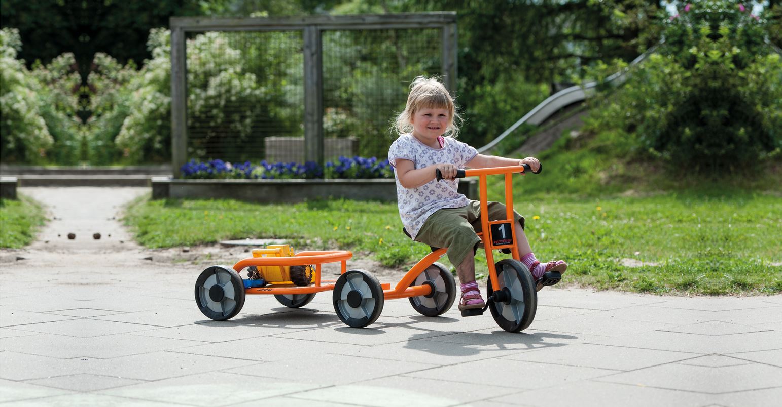 Anhänger aktiv • Der coole und stabile Anhänger ist für viele Verwendungszwecke bestimmt. Mit der sehr robusten Ladefläche lädt er zum Transport von Sand, Spielsachen oder einem Spielkameraden ein. Der Einsatz des Anhängers fördert das Rollenspiel. Einfache und schnelle Befestigung.