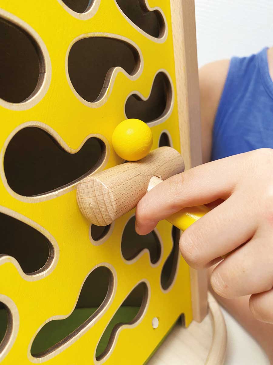 dabei herunterfällt oder durch eines der Labyrinth-Löcher verloren