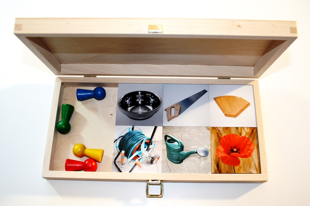 Inhalt: 24 Bildkarten, 7 x 7 cm und 4 Spielfiguren (4 cm hoch).