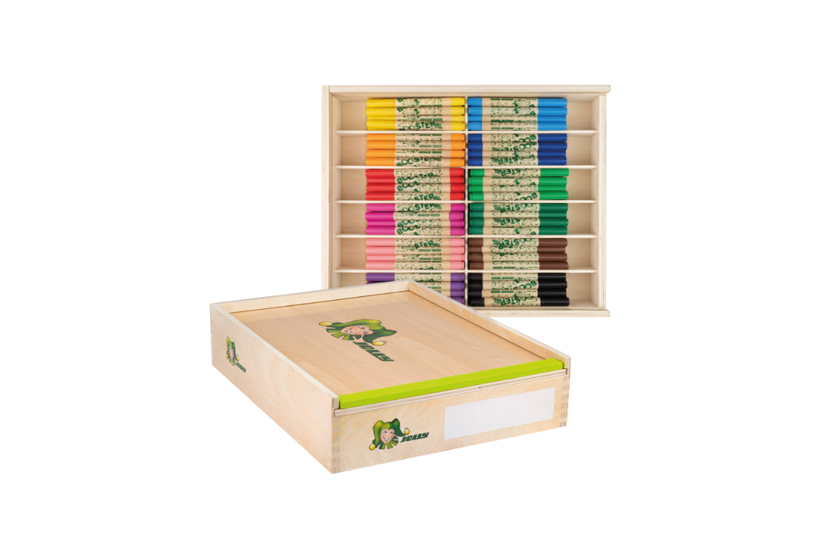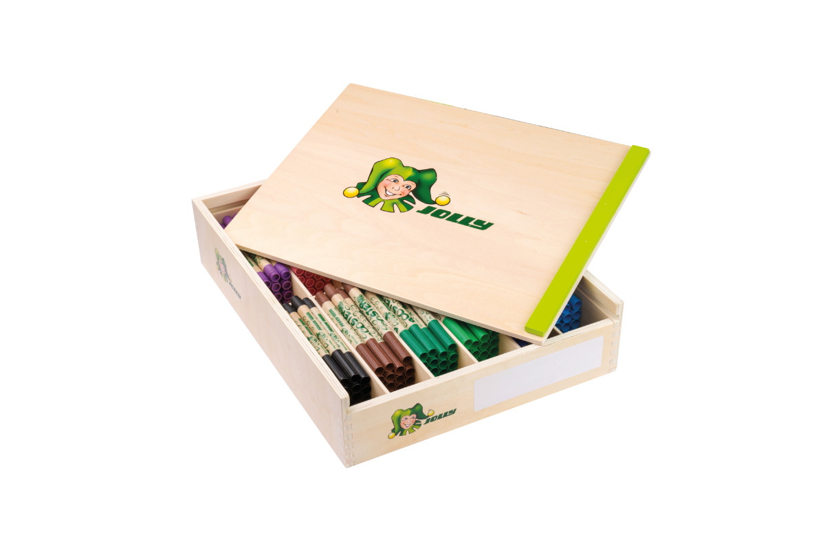 In der umweltfreundlichen Holzbox sind 15 Fasermaler pro Farbe enthalten. Mit den insgesamt 180 Stiften können so auch viele Kinder gleichzeitig mit derselben Farbe malen! Ideal für Kindergruppen im Hort, der Kita oder Schule!