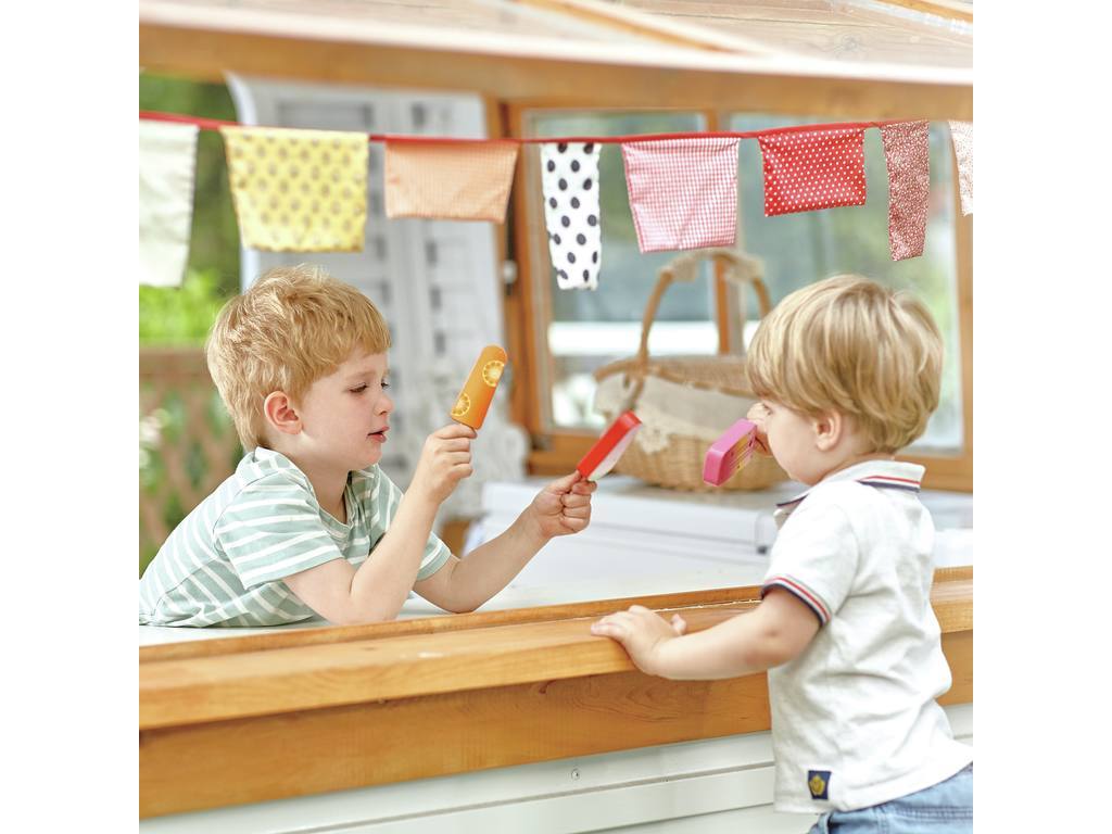 Das Eis am Stiel-Set enthält verschiedenfarbige Eiskreationen in eigenen Schachteln.