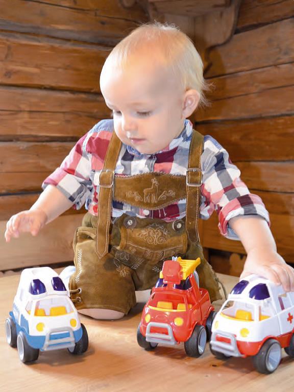 Hochwertiges Feuerwehrauto aus Kunststoff mit Gummibereifung und Stahlachsen in Babygröße