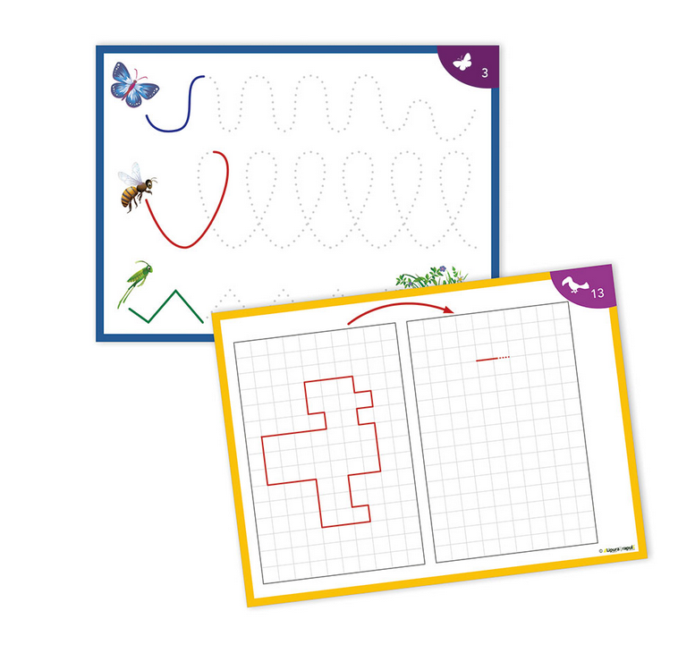 Schwungübungen, Erkennen von Muster und Strukturen sowie Zahlen und Buchstaben kennenlernen