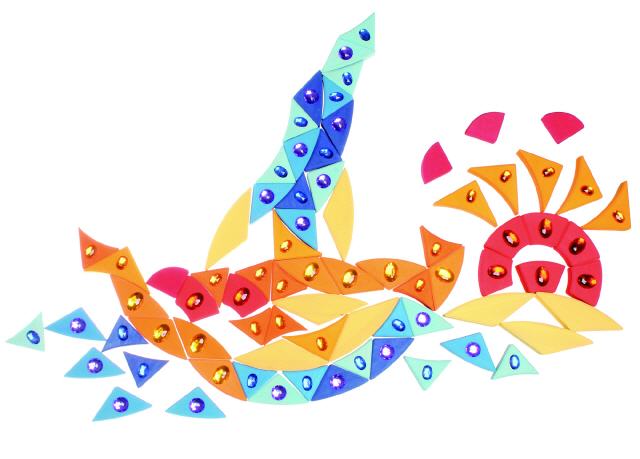 Mit dem Klötzchen vom Glitzermandala kann man bezaubernde Bilder legen und bauen:glitzernde Paläste, Burgen, Schiffe und vieles mehr entstehen durch die Phantasie der Kinder.