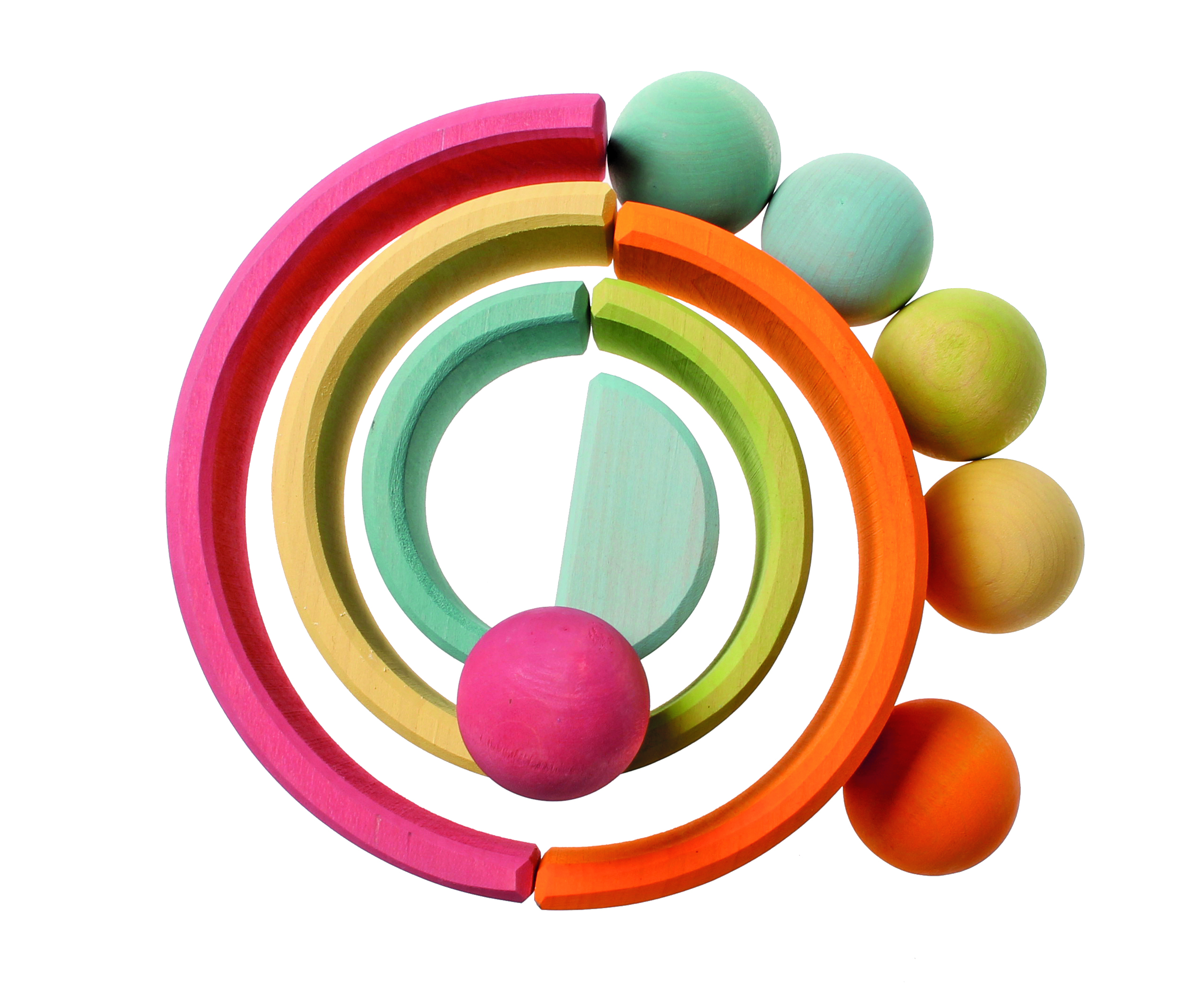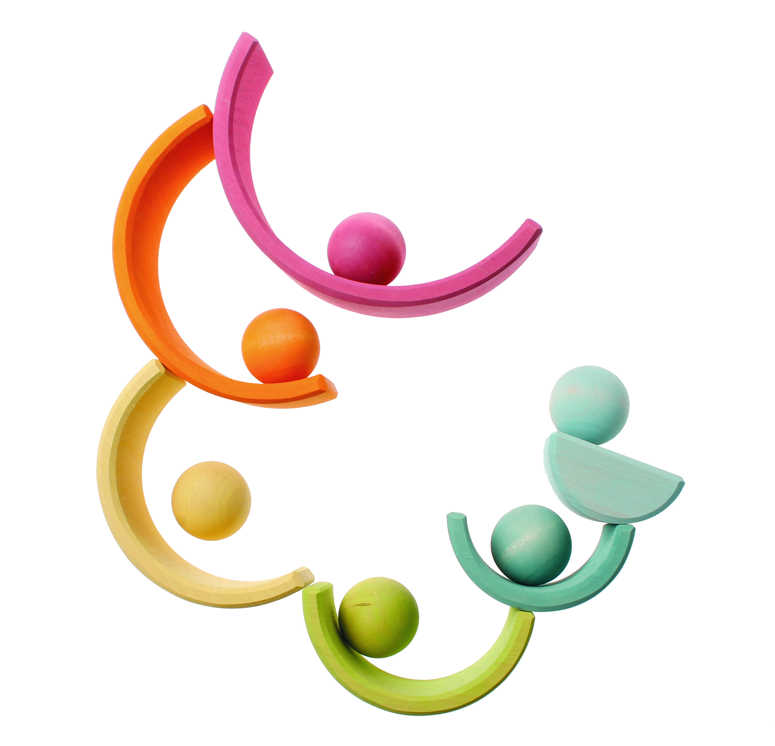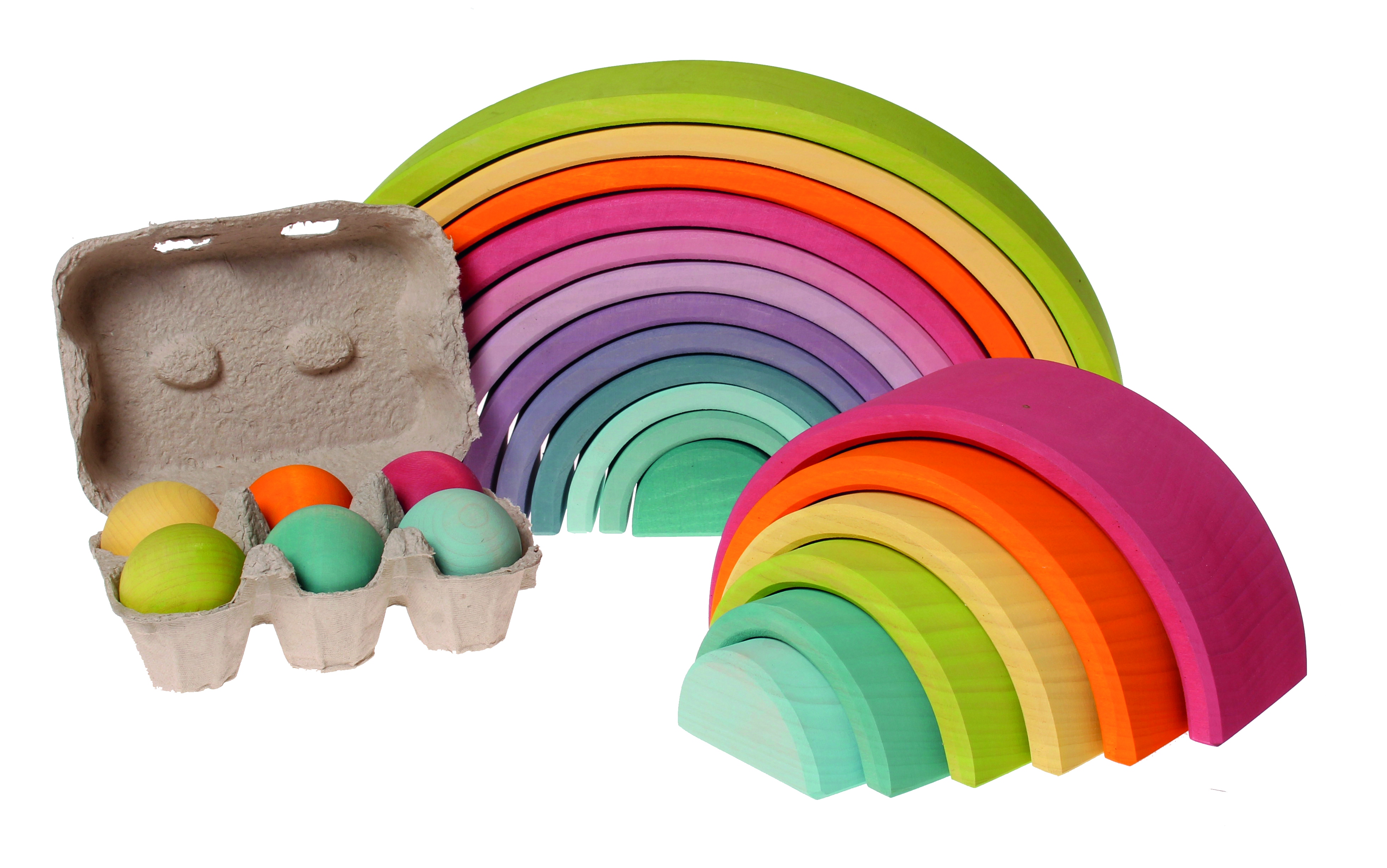 Für Kugelbahnen mit unseren großen und kleineren Regenbögen und andere Murmel- und Sortierspiele. Farblich passend zum Regenbogen (Art. Nr. 10701) und großen Kistensatz pastell (10369) und daher wunderbar als Sortierspiel mit diesem Artikeln kombinierbar.