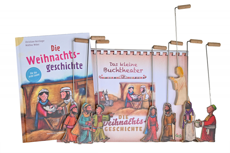 Mit den enthaltenen Bühnenbildern und Figuren lassen sich die Ereignisse aus Bethlehem nachspielen und miterleben.
