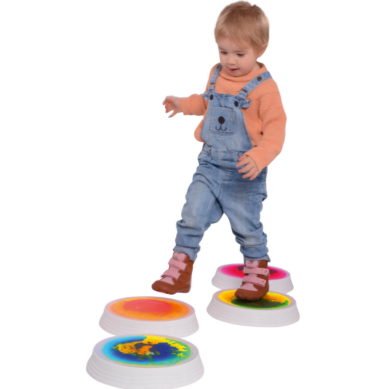 ... Die vier bunten Leuchtinseln sind ein Highlight für jede Sinnes- oder Bewegungslandschaft. Sie reagieren auf Druck: Wenn Kinder darüber laufen, entstehen faszinierende Farbspiele in Pink, Gelb-Blau, Gelb-Grün und Lila. Beim Balancieren, Springen oder Sitzen trainieren die Kleinen Gleichgewicht, Körperwahrnehmung und Koordination. Die Leuchtinseln können frei im Raum platziert werden. Sie sind bis 60 kg belastbar und lassen sich an der Unterseite ein-/ausschalten (3 x AA Batterien erforderlich, nicht inkl.).