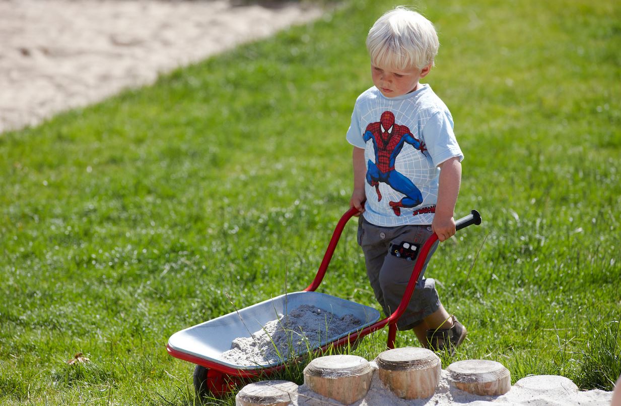 MINI VIKING Schubkarre • Mit der standfesten Schubkarre können bereits kleine Kinder die unterschiedlichsten Ladungen kippsicher transportieren. Zwei Vorderräder sowie verstärkten Abstellfüße und die extra verstärkte Ladefläche sorgen für optimale Stabilität.