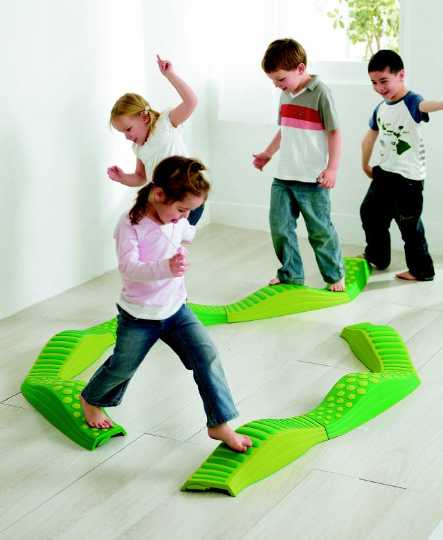 ... Als Ergänzung mit den Regenbogenflusssteinen KT0008, Honey Hills KT0016 sowie den Balance Clouds KT0012 oder als eigenständiges Set sehr vielseitig einsetzbar. Acht Wellenwege die zum Kreis, zur Schlange oder versch. Fantasiewegen gelegt werden können helfen zur Schulung von Bewegungskoordination, Stabilität, Konzentration, Muskelaufbau, Geschicklichkeit, Kreativität und Balance. Die verschiedenen Oberflächenstrukturen aus Gummi sind fest mit dem hochwertigen Kunststoff verbunden und halten ein "Leben lang", das gleiche Gummimaterial an der Unterseite sorgt für einen sicheren Stand. Ineinander gestapelt und in der mitgelieferten Tasche verstaut, ist die Flußsteinelandschaft platzsparend weg geräumt. Belastbarkeit bis 80 kg.