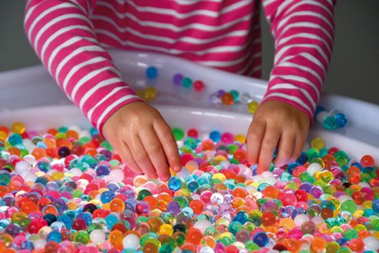 zu einem wahren Sinneserlebnis: Man kann regelrecht zusehen wie die Kügelchen das Wasser aufnehmen und dabei immer weiter wachsen.