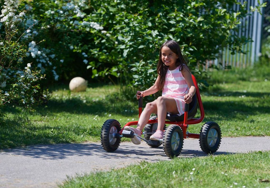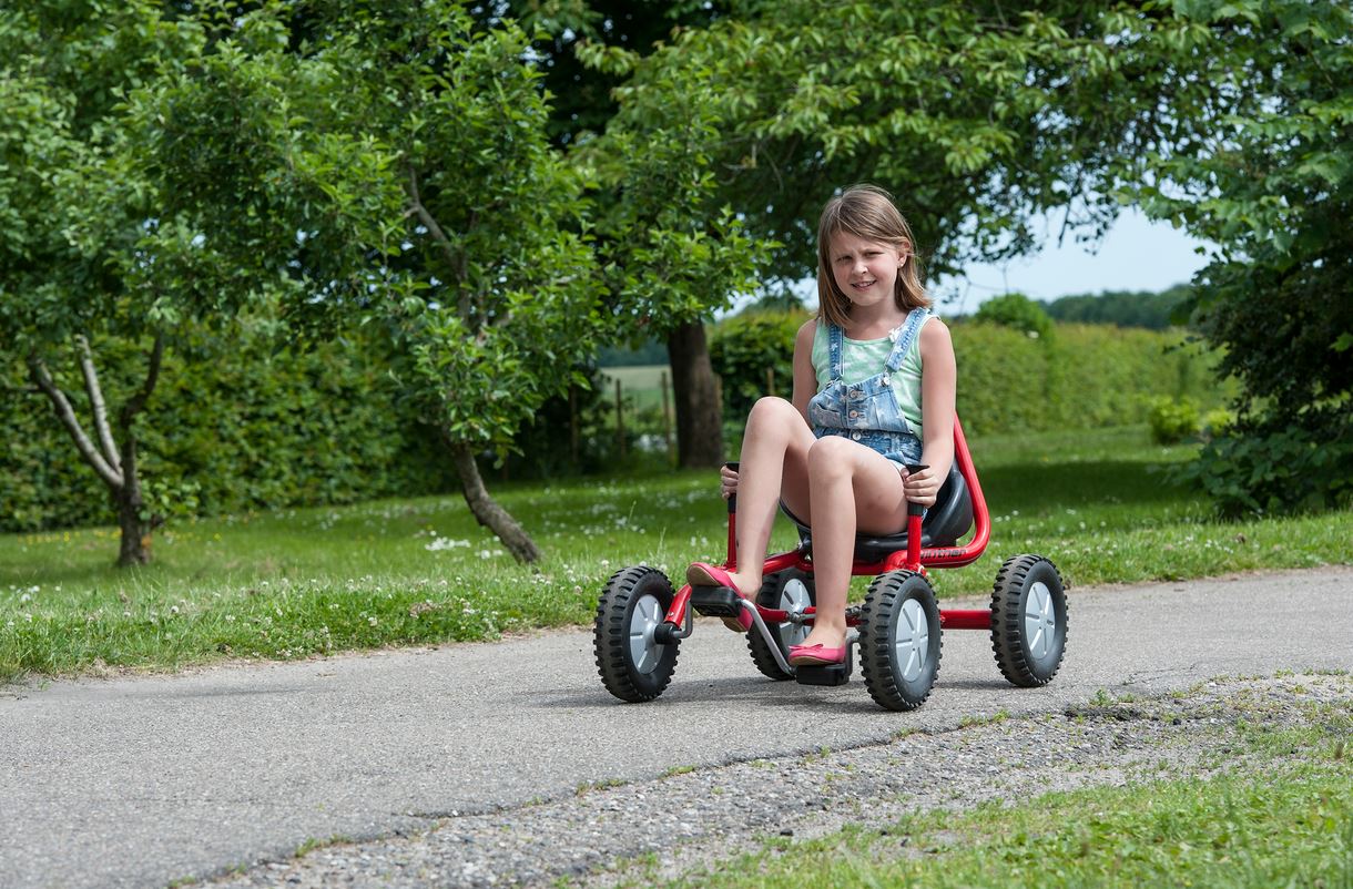 VIKING EXPLORER FunCart Large • Die coolen Fahreigenschaften sind das Besondere, Reizvolle und Aufregende bei diesem Fahrzeug. Der Antrieb erfolgt über die Vorderachse, die Lenkung wird mit den Handgriffen über die Hinterräder gesteuert. Fahren und Spielen mit dem großen FunCart fördert und verbessert Koordinationsfähigkeiten und Körperbeherrschung.