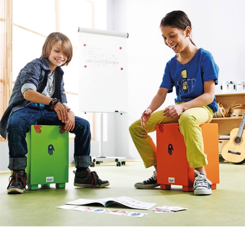 Ideal für den Einsatz im Kindergarten und zur musikalischen Früherziehung für Kinder. Bei jeder Cajon sind praktische Handaufkleber dabei, welche die verschiedenen Orte für die beiden Geräusche Bass und Snare markieren.